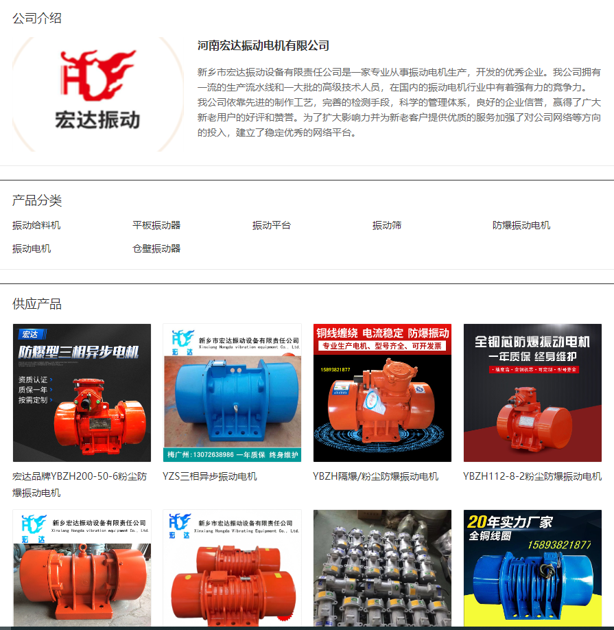 如果您對我們的產品感興趣或有任何疑問,請隨時聯系我們,我們將竭誠為您服務。電話:15893821877 0373-2632855。歡迎訪問我們的官網,了解更多關于河南宏達振動電機有限公司的信息和產品詳情?1